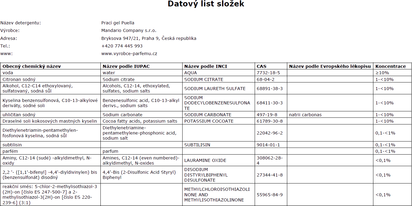 Puella produkty neobsahují: Těžké kovy, znečišťující rezidua, dioxan, SVHC, parabeny, PBT/vPvB látky, mikroplasty ani nanolátky.
