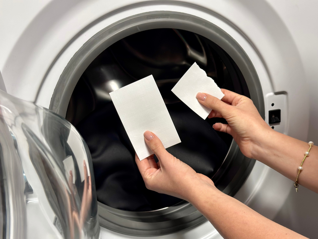 - Snadné dávkování - stačí vložit proužky přímo do pračky s prádlem.