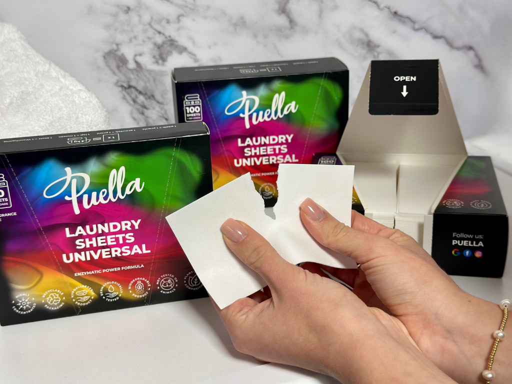 Zažijte čistící sílu Puelly v novém formátu! Naše proužky na praní obsahují stejně vysokou koncentraci účinných látek jako náš populární gel, ale v ještě menším a ekologičtějším balení.